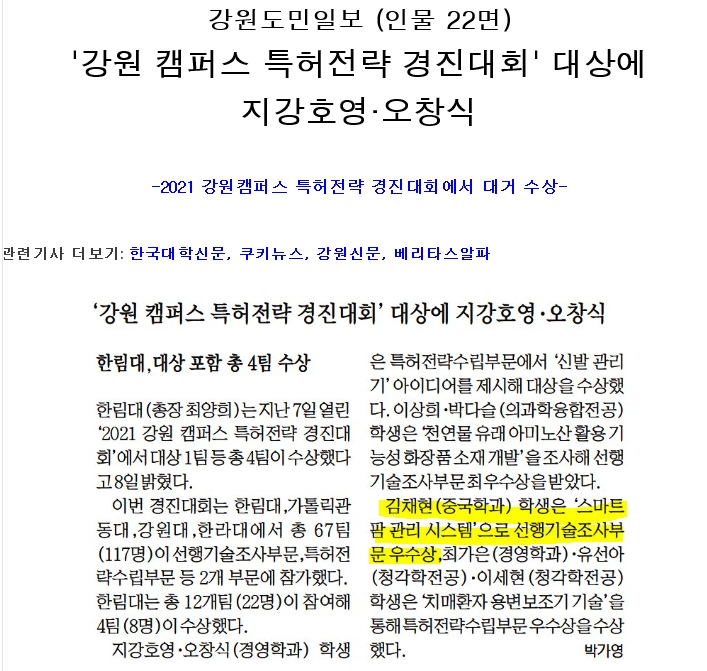 중국학과 17학번 김채현 학생, 강원 캠퍼스 특허전략 경진대회 우수상
