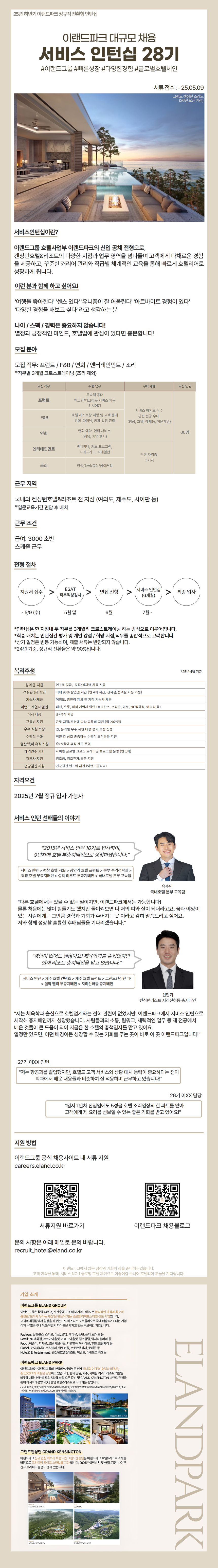 [홍보] 2025 하반기 이랜드파크 서비스인턴십 28기 채용