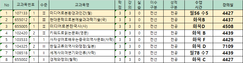 * 강의실 경우, 추후 변경 가능성 있으므로 개강(2024.9.2) 전, 최종 확인 바랍니다.