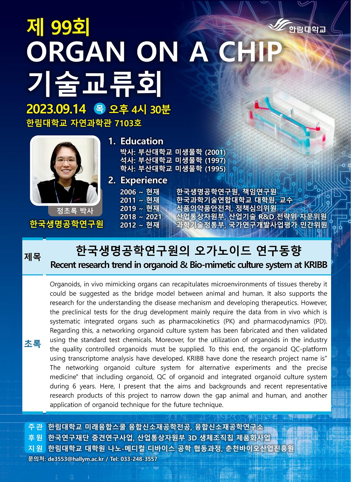 제 99회 Organ on a Chip 기술교류회가 2023년 09월14일 진행되었다.