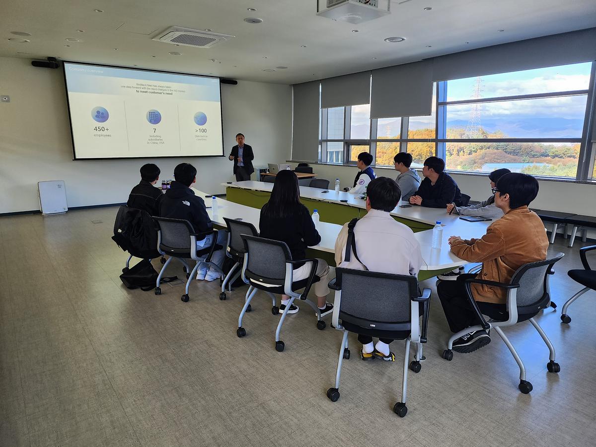 2023년 10월 27일(금) 춘천 소재 체외진단기기 개발업체인 (주)바디텍메드에 박종민 교수와 학부생 9명이 방문하여 체외진단 기술분야에 대한 소개와 향후 전망에 대해 청취하고 생산/품질관리 현장을 견학하였다.