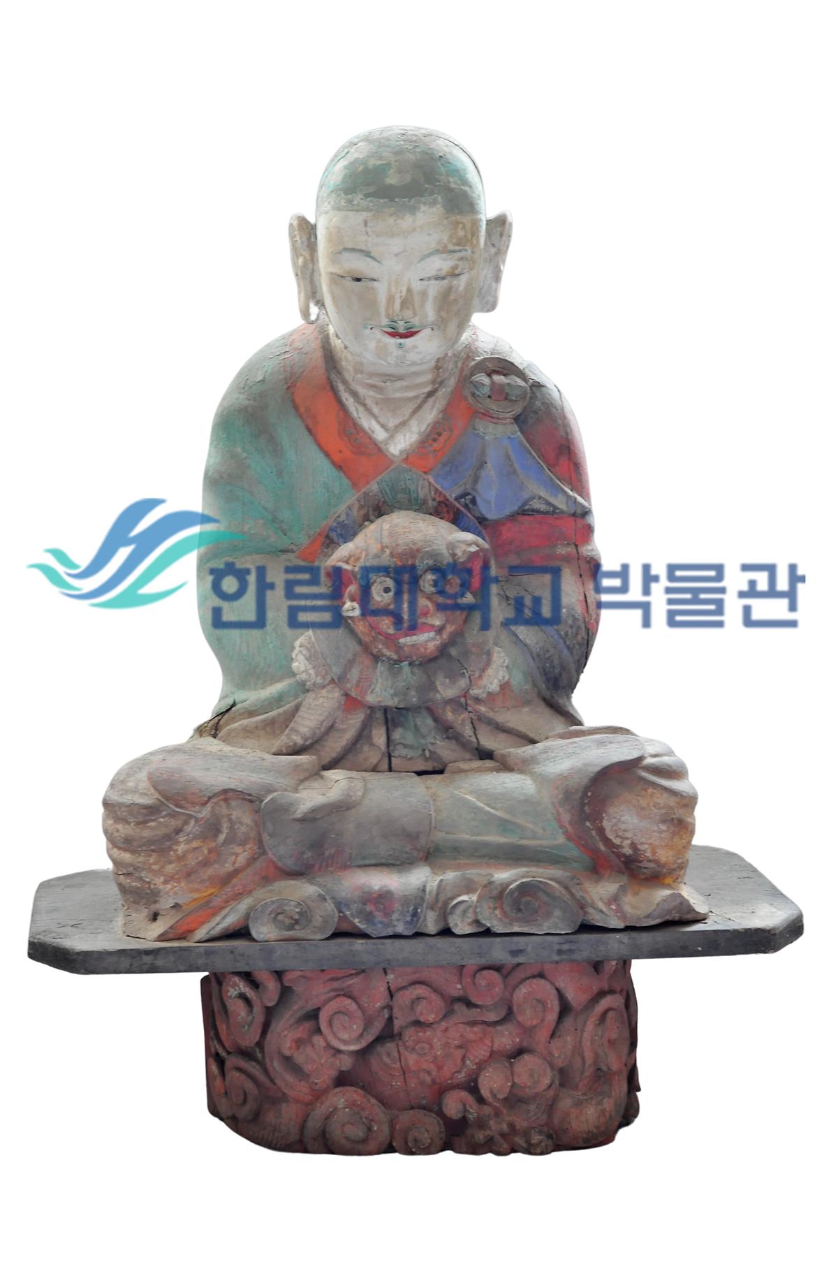 이번에 소개할 나한상 2구는 조선후기 나무로 조성되었습니다용과 구름이 화려하게 조각되어 있는 대좌(받침대)에 가부좌를 한 자세로 정면을 바라보고 앉아있습니다