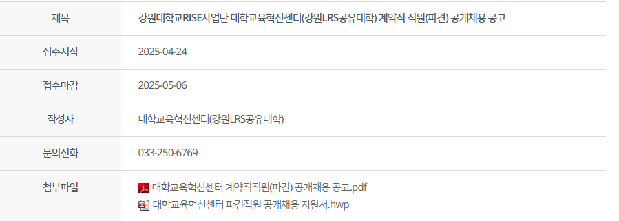 - 한림대 파견직도 채용예정 첨부파일 확인