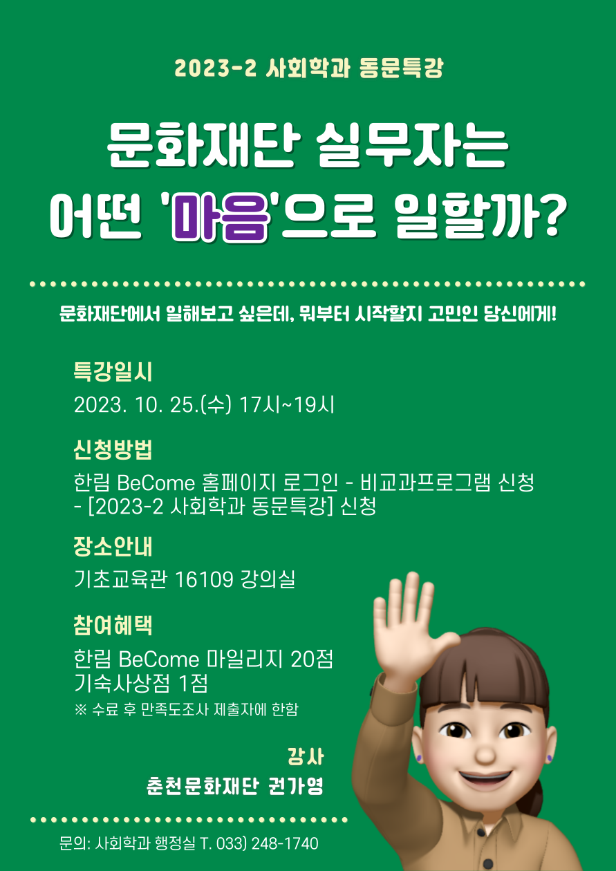 2023-2 사회학과 동문 특강(1회차) 안내
